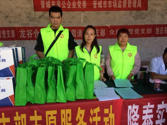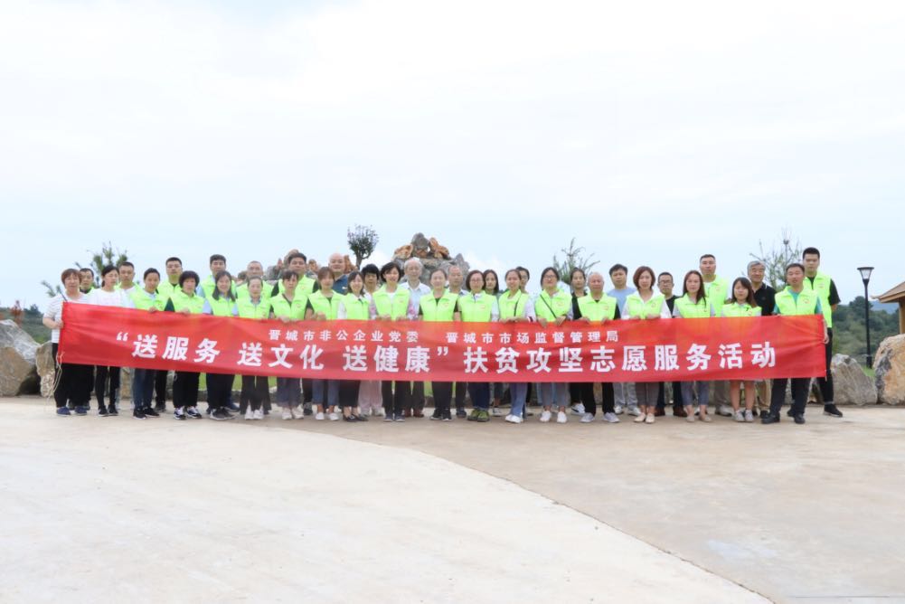 此次活動由晉城市市場監(jiān)督管理局和市非公企業(yè)黨委領導帶隊,非公黨委下屬的潔霸清潔、神利電器、隆泰實業(yè)、龍谷倉等九個支部的黨員志愿者30余人參加,活動旨在關愛弱勢群體,提供志愿服務,弘揚黨員志愿者精神,切實發(fā)揮文明單位的引領示范作用,送文化和健康下鄉(xiāng),助力晉城市扶貧攻堅行動。