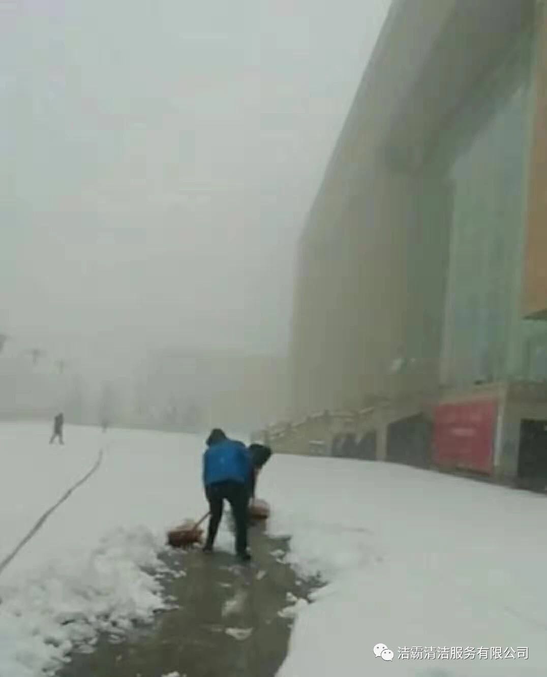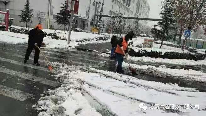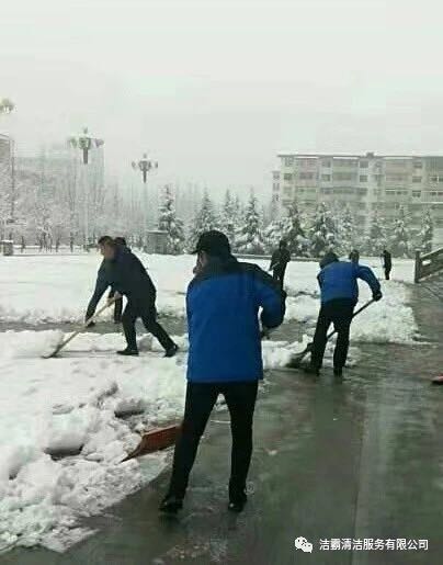 為了消除安全隱患,確保人們出行安全,潔霸公司各個項目部、服務(wù)點也積極行動起來,投身到掃雪活動中。他們有的向地面撒鹽,有的用掃雪機清掃積雪,有的拿鐵鍬鏟雪,有的拿笤帚掃雪,有的用簸箕攬,也有的用桶子裝……雖然寒冷,但大家的心卻很溫暖,熱火朝天的掃雪場面給這個寒冷的冬季帶來一絲暖意。為掃出一片安全通道,大家共同努力著,天空中飄著的雪花與大家忙碌的身影構(gòu)成了雪后一道靚麗的風(fēng)景線。