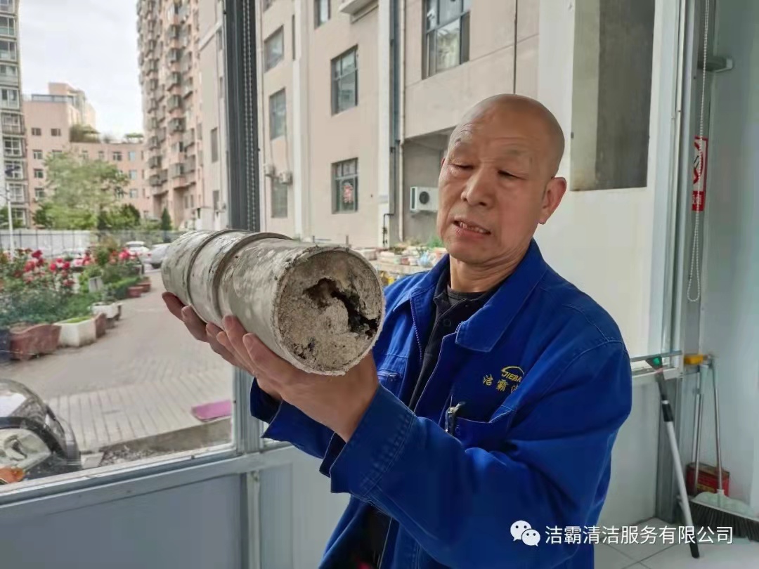 A單元的污水主管道堵塞,是因修建時的不合理性。這十多年來垃圾一點一點累積,污物像惡性腫瘤一樣,密密實實的塞在污水主管道底層部分有十幾米。用潔霸公司程晉軍總經(jīng)理生動形象的比喻。這種堵塞病癥是管道得了食道癌,這種病癥只能大動手術(shù)才能治療。