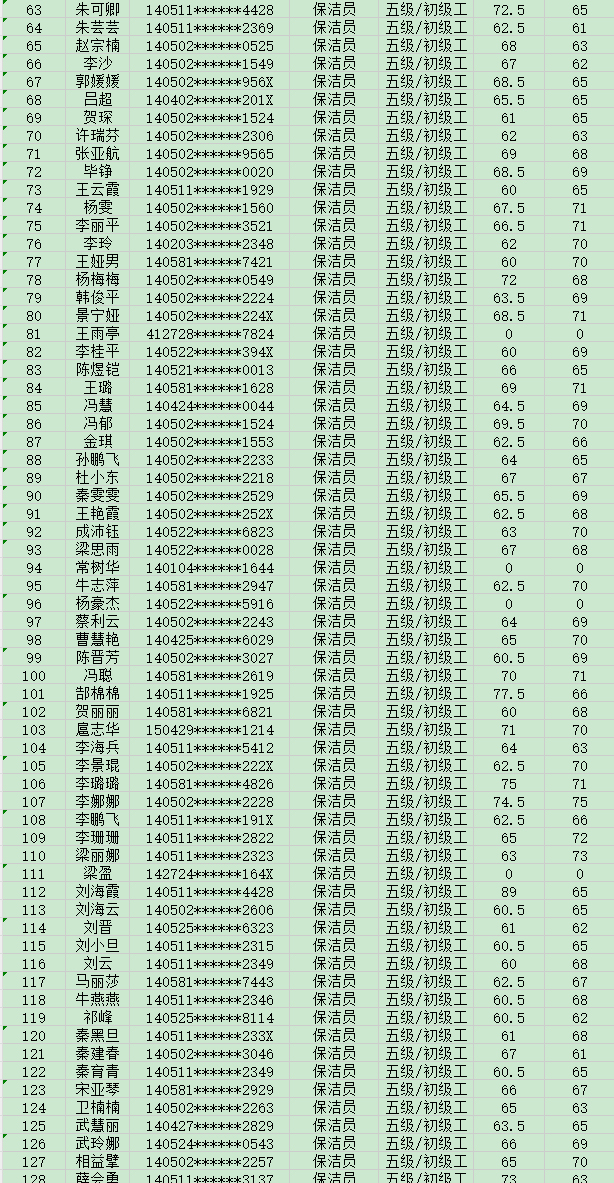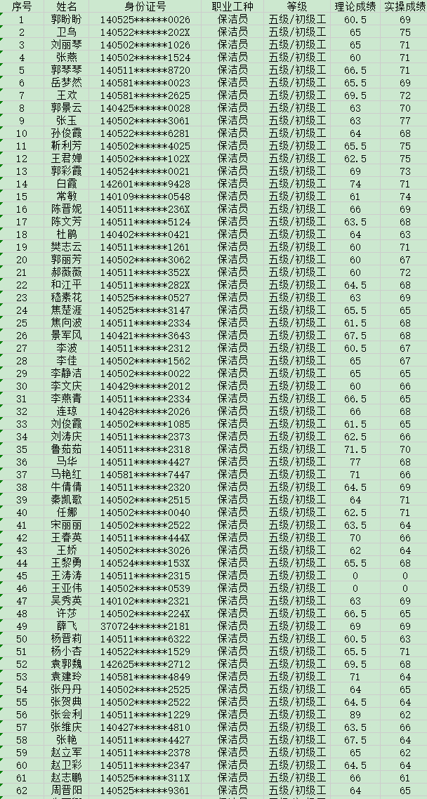 晉城市潔霸清潔服務股份有限公司職業(yè)技能等級認定中心現(xiàn)將2024年6月2日認定人員成績公示如下:
