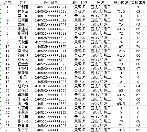 2024年9月21日第9批美容師初級(jí)認(rèn)定人員成績公示