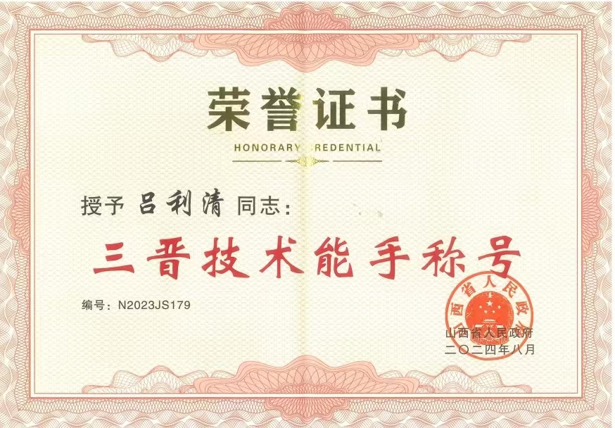 | 我公司呂利清榮獲“三晉技術(shù)能手”稱(chēng)號(hào) |